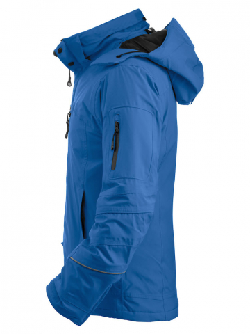 Exklusive, gefütterte Softshell Jacke. Anatomisch vorgeformte Ärmel mit Reflektorstreifen, verdeckte Ärmelbündchen, wasserdichte Reißverschlüsse, Schneefang, abnehmbare Kapuze, mit Kordelzug versehene Innentasche, Wassersäule WP 5000 / Atmungsaktivität MVP 5000.